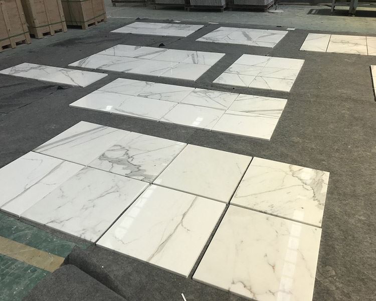 Gambar di bawah ini adalah Calacatta WhiteMarble Tiles 40x80, disukai oleh pelanggan akhir.